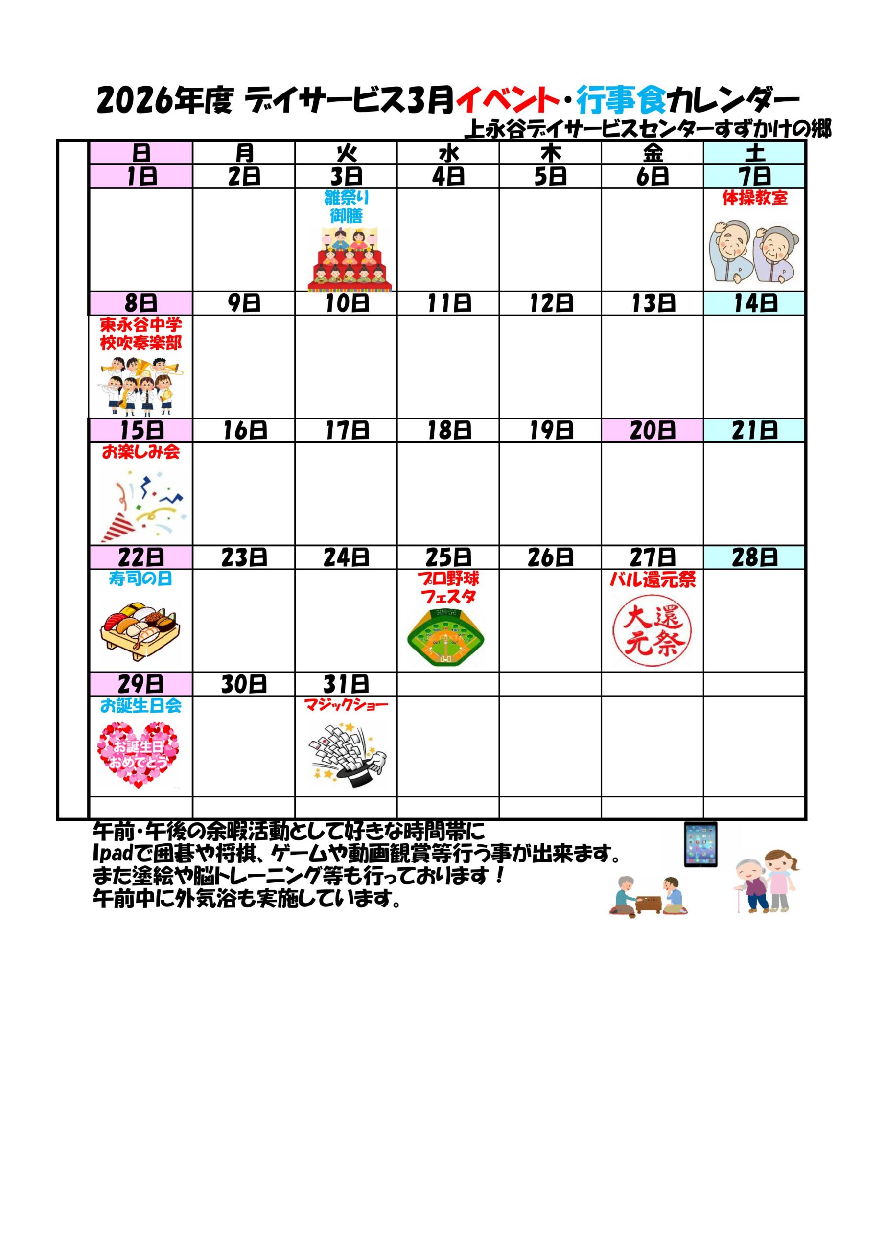3月のイベント・行事食が決まりましたのでお知らせいたします。