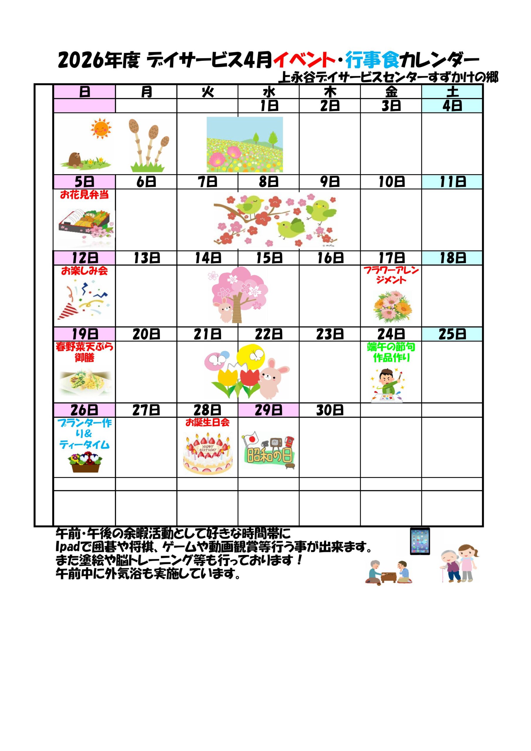 4月イベント・行事食のお知らせ