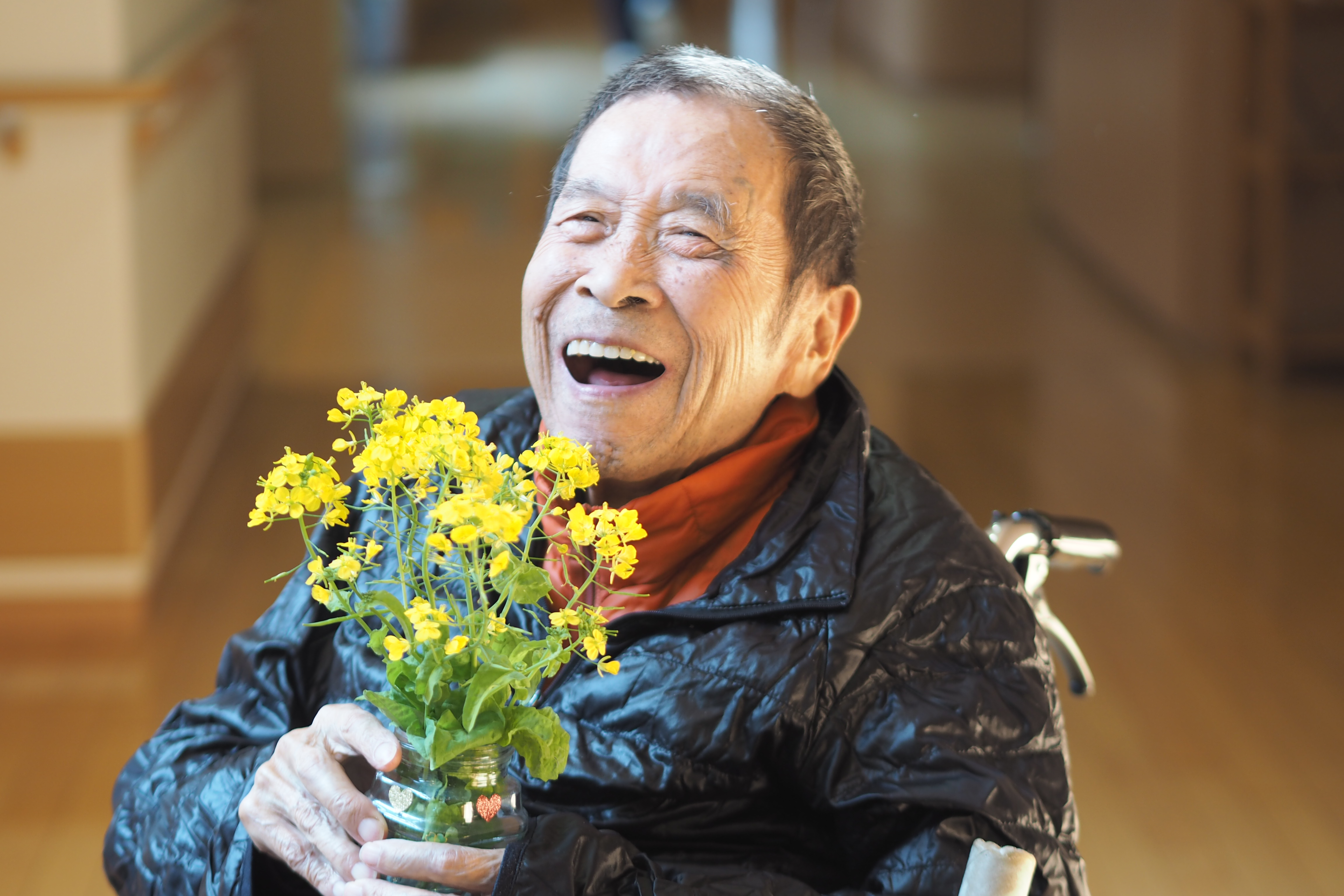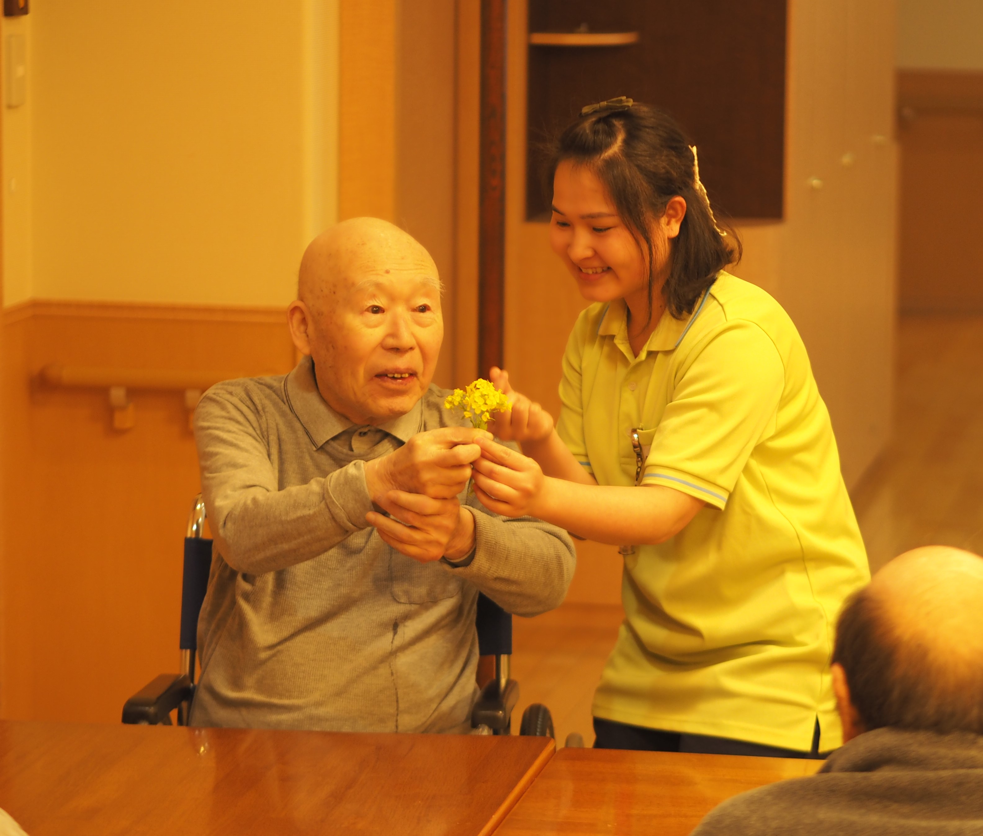 4月2日(木)屋上に咲いた菜の花を摘んで、ご利用者さまへ春をお届けいたしました!