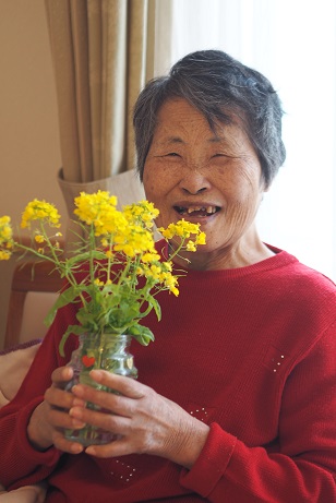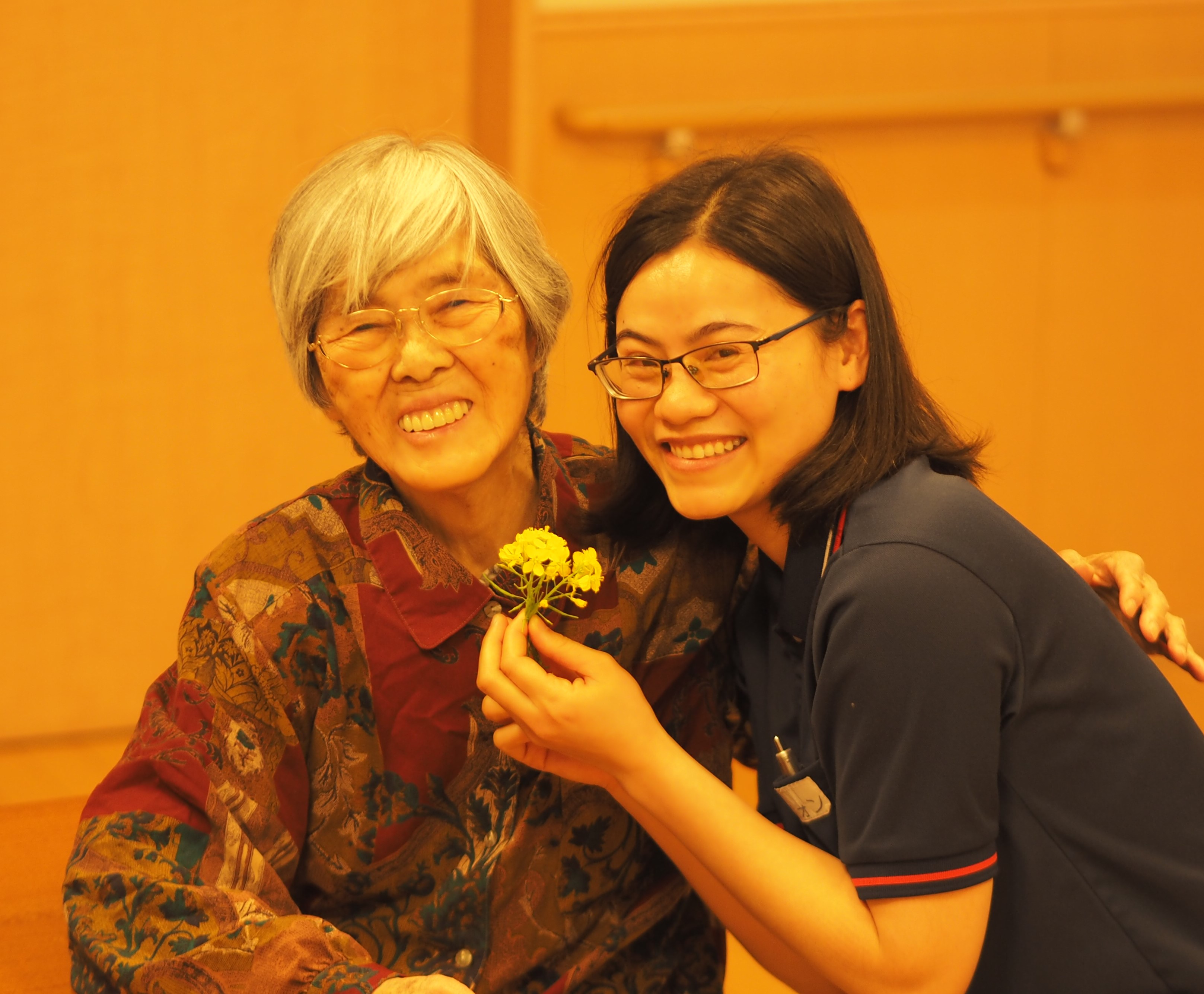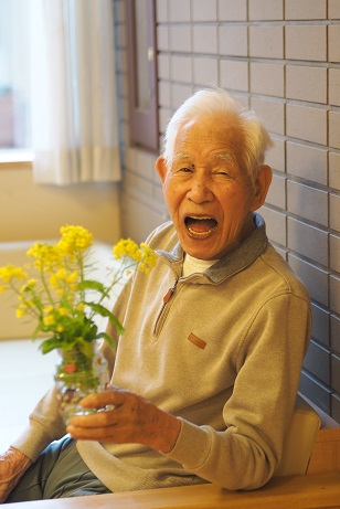 4月4日(土)昼食後に、施設で咲いた菜の花と記念撮影をしました。