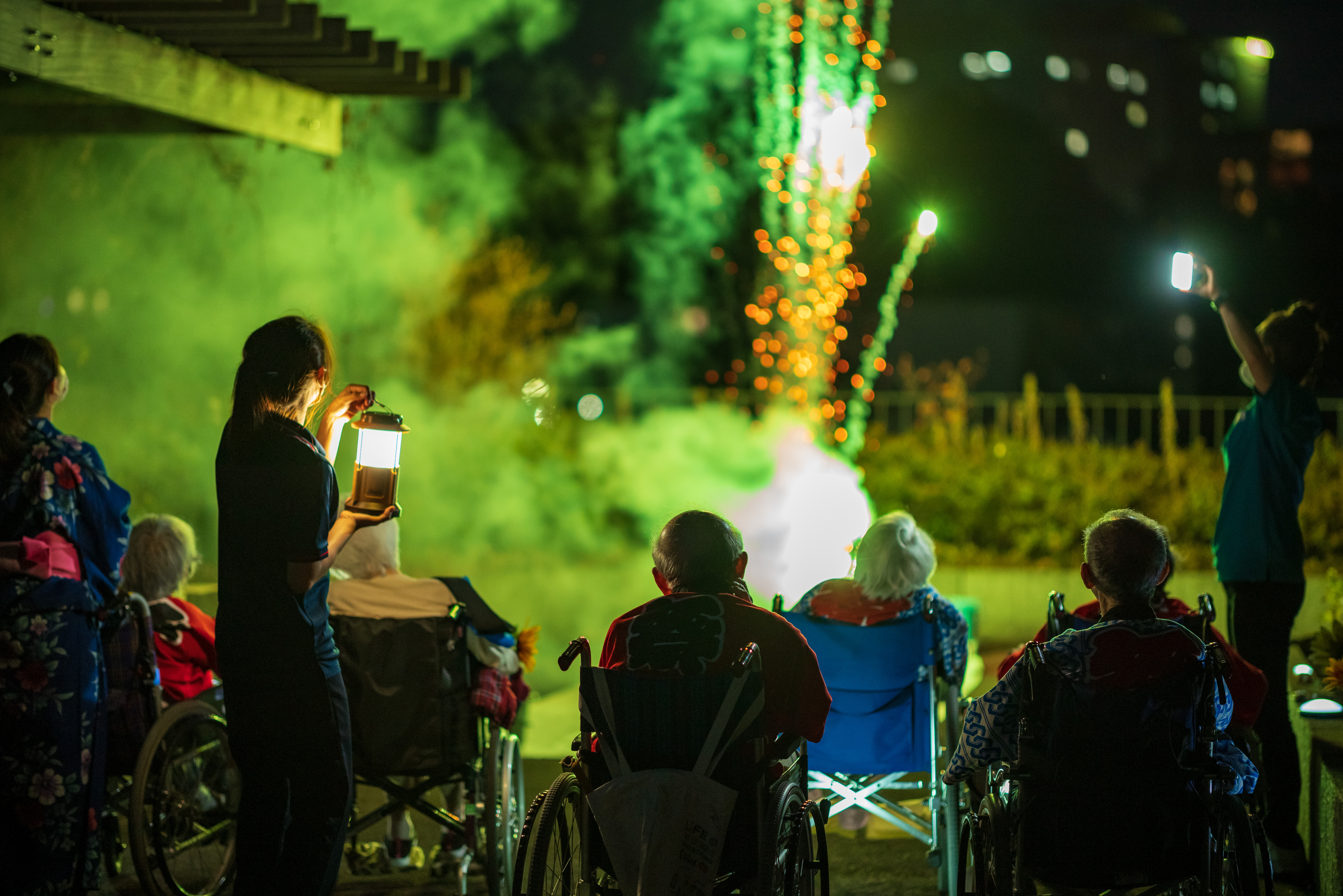 8月18、19、20日は、施設の屋上で花火大会を行いました! とってもキレイで大盛り上がりでした♪ 夏の思い出がまたひとつ増えました。