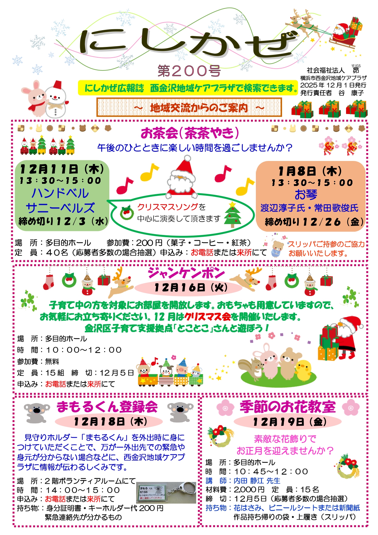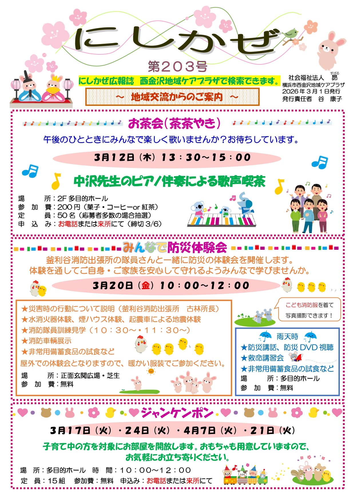 横浜市西金沢地域ケアプラザは、皆さまが愛する住み慣れた街で、生き生きと健やかな生活をお過ごしいただくための施設です。