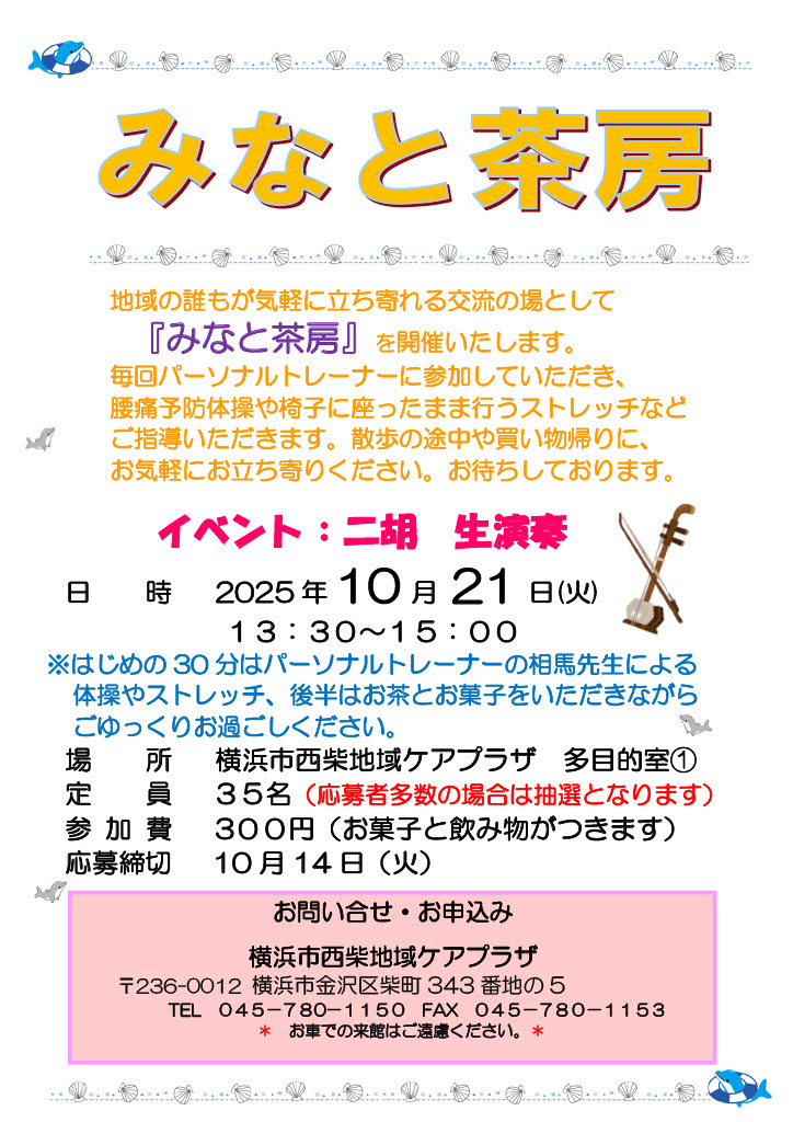 名称 | 社会福祉法人 昴 横浜市西柴地域ケアプラザ 横浜市西柴コミュニティハウス |