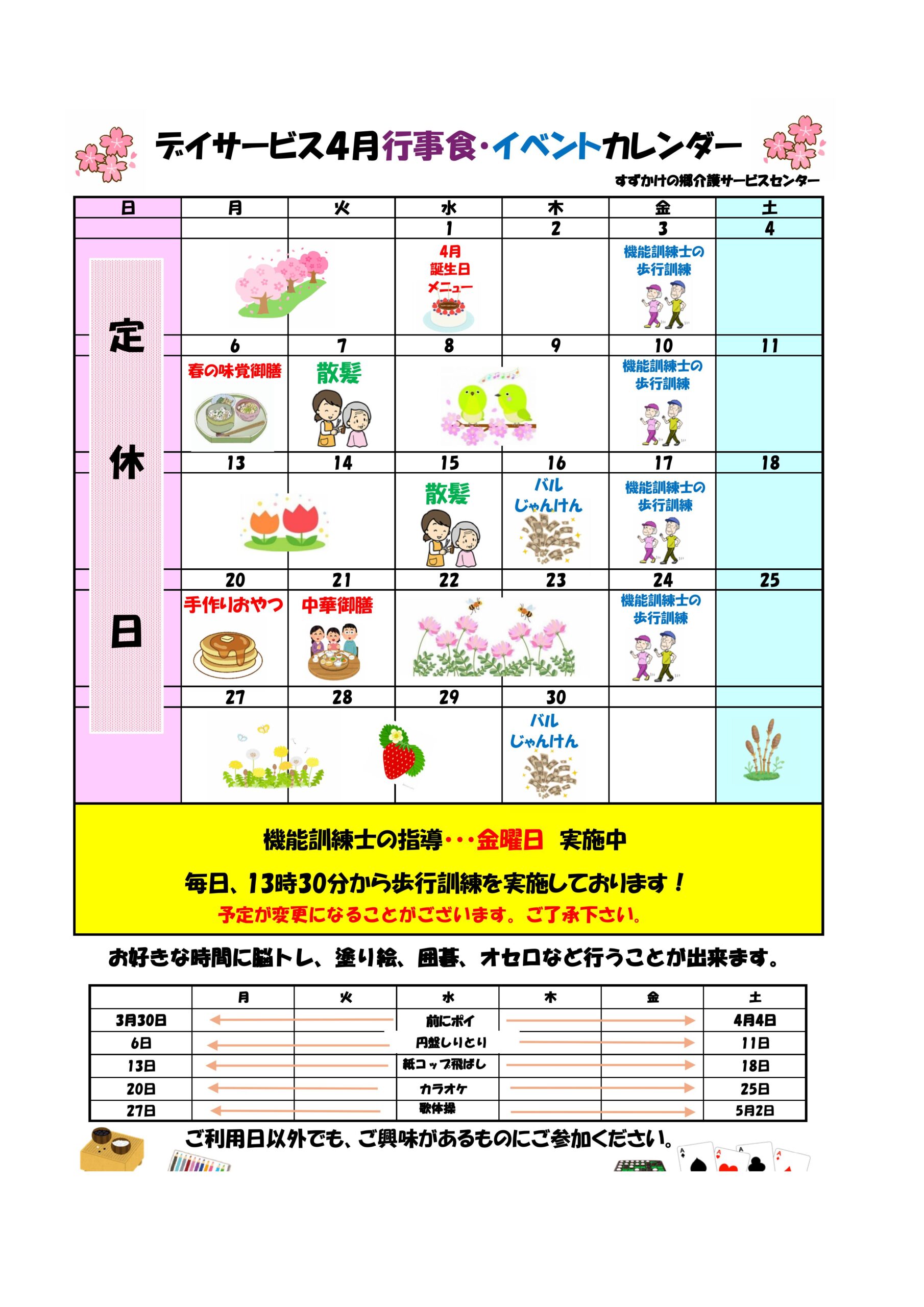 【デイサービス】4月の行事予定のお知らせ