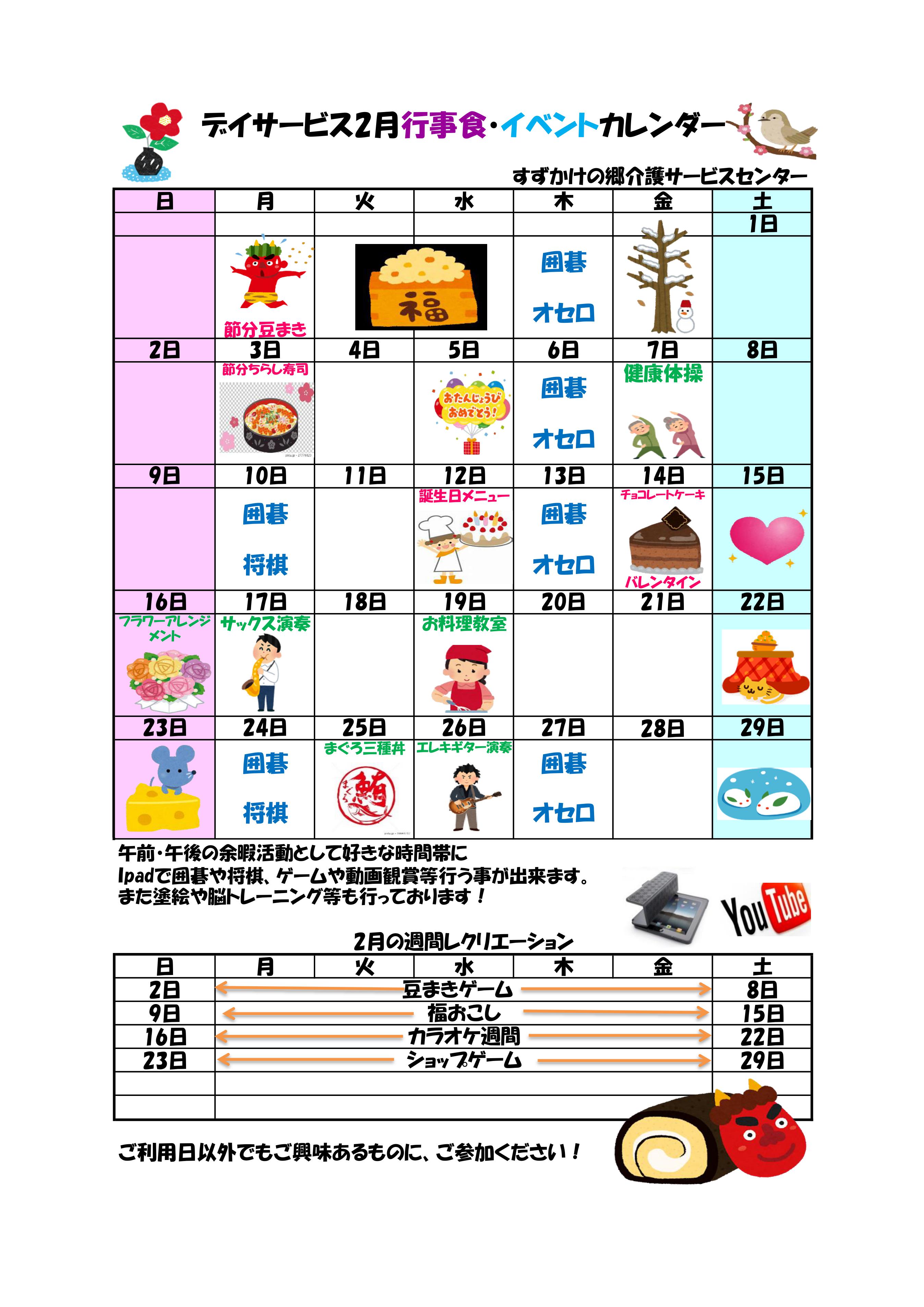 【デイサービス】2月行事予定のお知らせ