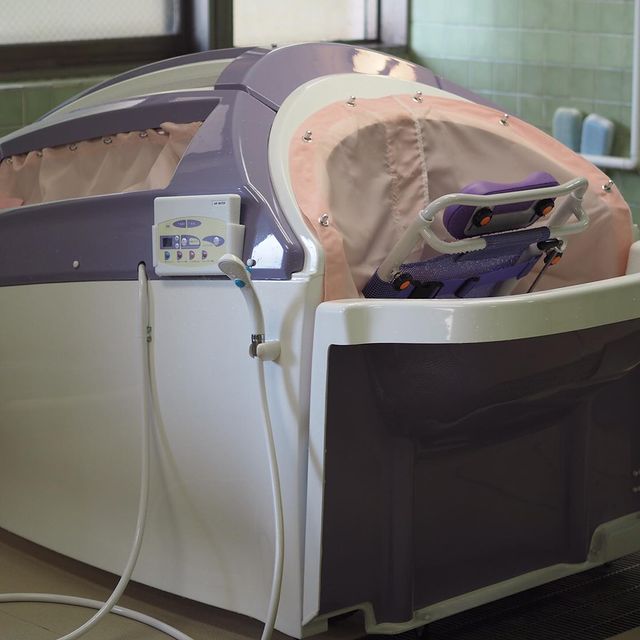 特別養護老人ホームすずかけの郷では、見守りシステム導入と同時期に入浴機械も入れ替えました。 色々な機械を見る中で『ミスト浴』に決定。 身体に優しいミストとリラックス出来るボディーソープの香り。身体も心もポカポカ。 ご利用者さまからも「気持ち良いね」と好評です!