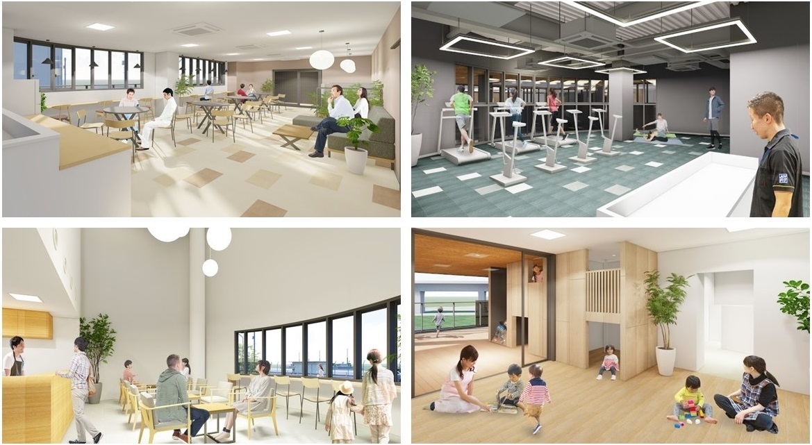 【地域開放施設】 フィットネスジム、カフェ、企業主導型保育所(定員の一定数を地域から募集します)